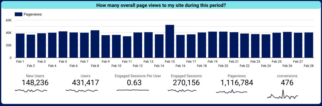 New Users | Users | Engaged Sessions Per User | Engaged Sessions | Pageviews | Conversions |