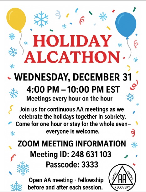 Este es nuestro alcatón de Año Nuevo. Únase a nosotros y comience el Año Nuevo con sobriedad.