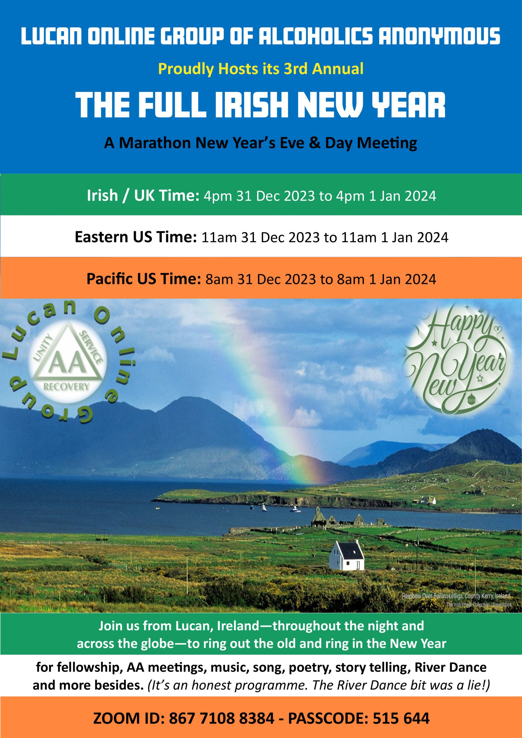 Reuniones de AA durante una hora, luego compañerismo durante una hora… ¡¡¡incluyendo música, narración de cuentos, juegos, Riverdance y mucho más!!! (Vale, es un programa honesto, lo de Riverdance era mentira ????)