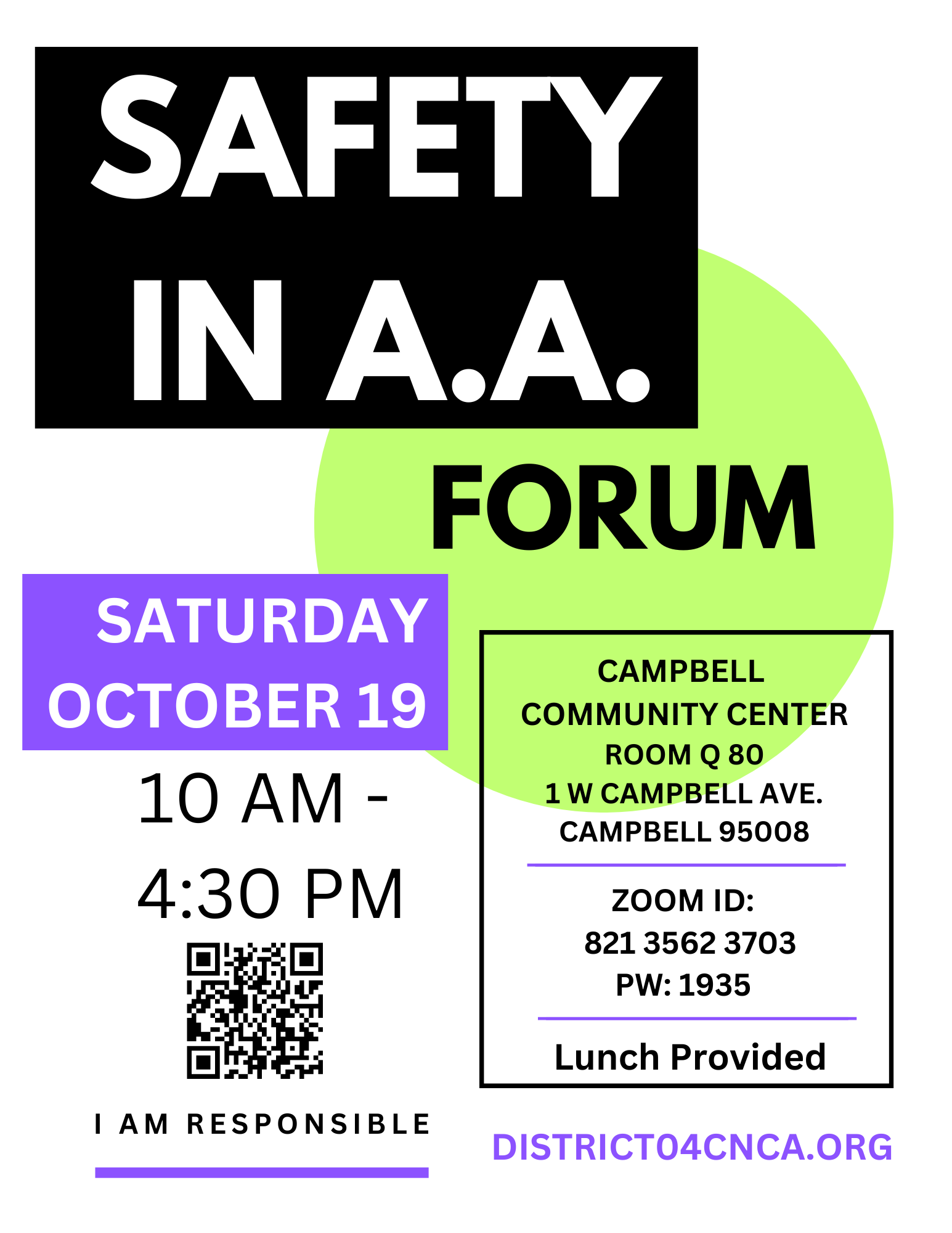 Se tratarán todas las formas de seguridad en AA: psicológica, financiera, sexual y espiritual. Discutiremos los resultados de nuestra Encuesta de Seguridad y revelaremos nuestro Kit de Herramientas de Seguridad para Grupos.