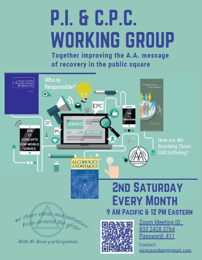 Debate y presentaciones mensuales de divulgación para cualquier persona de AA interesada en el propósito principal.