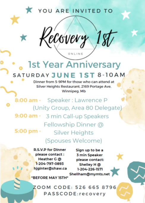 Recovery 1st organise son 1er anniversaire le samedi 1er juin de 8h à 10h CST, et la réunion se déroule uniquement en ligne.