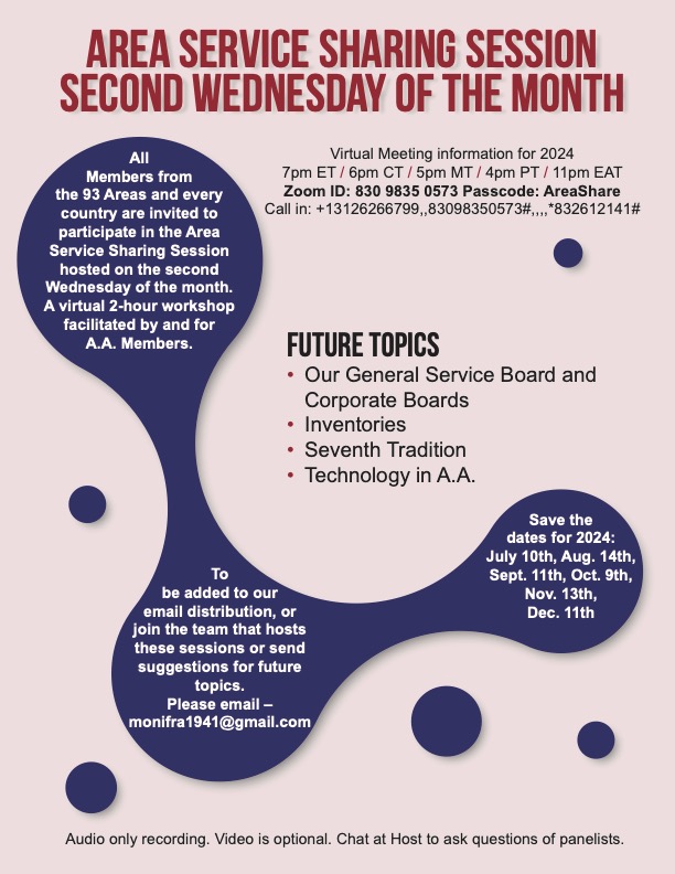 Session de partage de service régionale – sujet : le Conseil des Services généraux et nos deux conseils d’administration