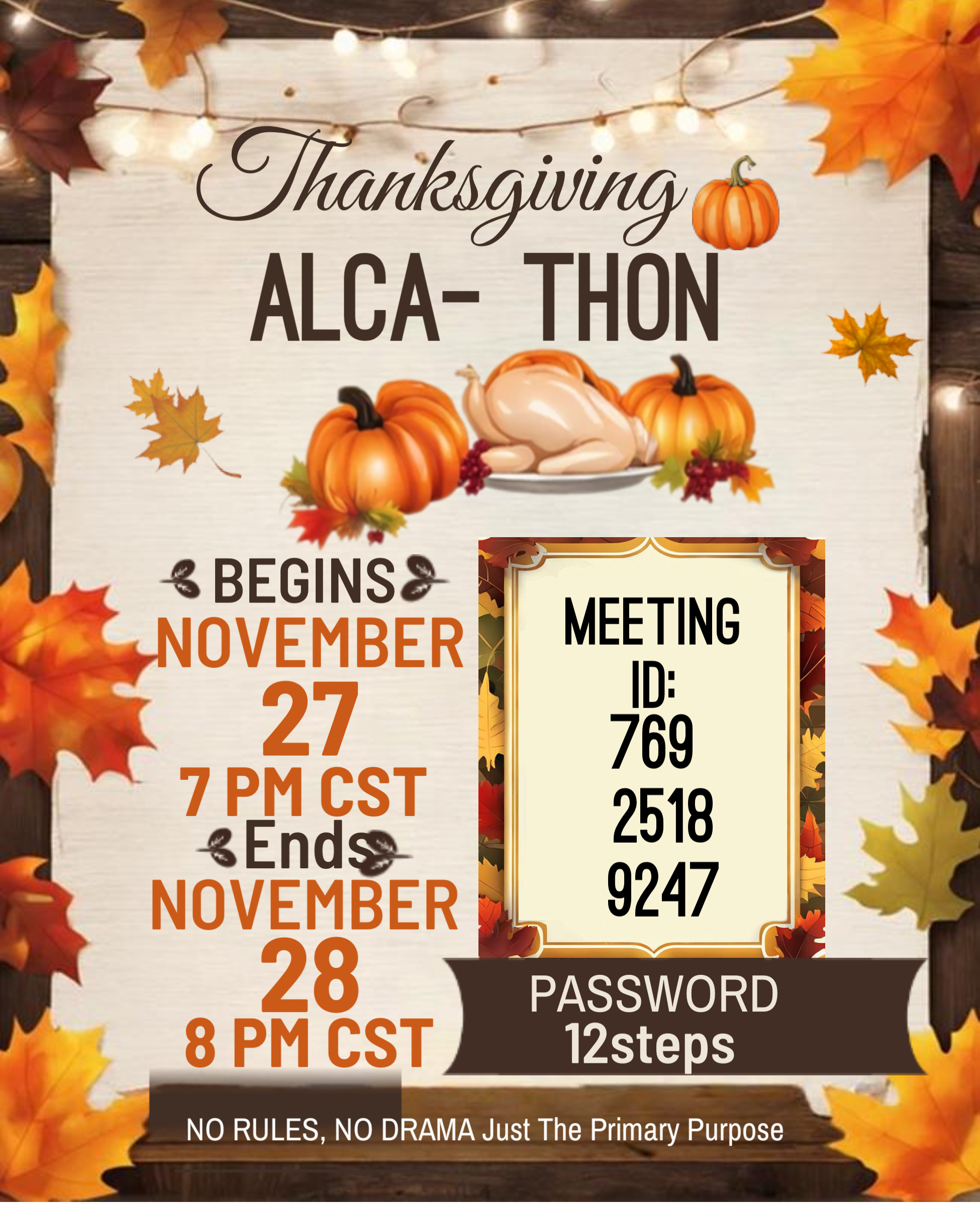 🍗🍗🍗Ci sarà un Alcothon del Ringraziamento, a partire da mercoledì 27 novembre dopo la riunione serale, che continuerà fino a giovedì 28 novembre. Unisciti a noi!🦃🦃🦃